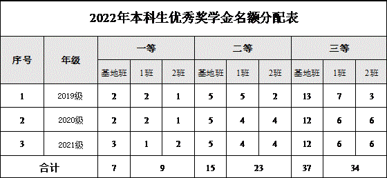 根据学校划拨的优秀学生奖学金名额,学院名额分配如下: